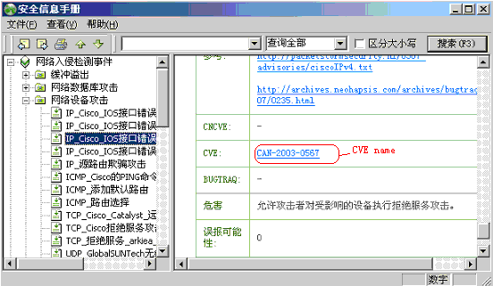 - Click the hyperlink above the CVE NAME item, the CVE page with the respective CVE name will be opened, which includes the description and reference material of the event.