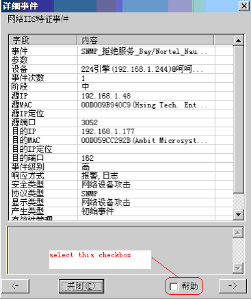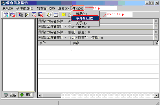 - Select "Help->Event Help" from IDS Console. The "Event Help" window will be displayed as illustrated.