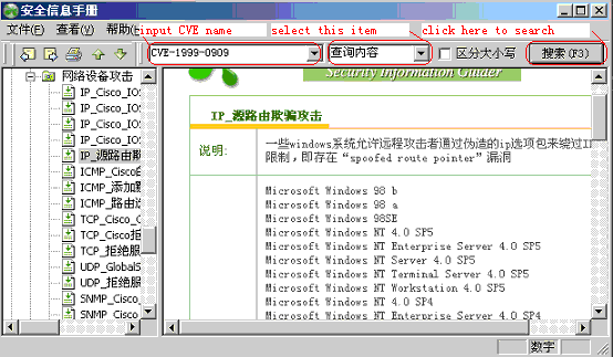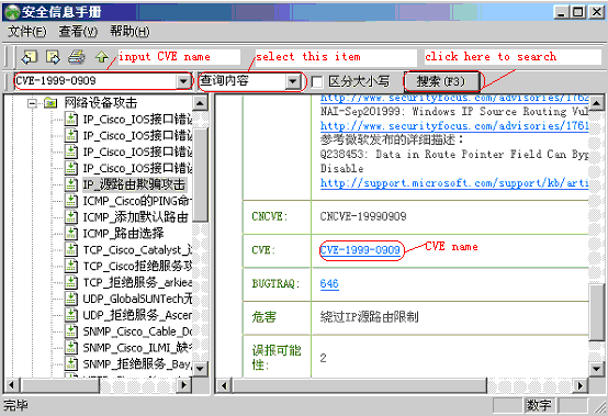 - Type the CVE number in the "Contents" edit box as illustrated, and select "Search Content" , then click the "Search" button, all the available information will be showed as following: