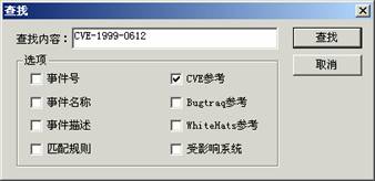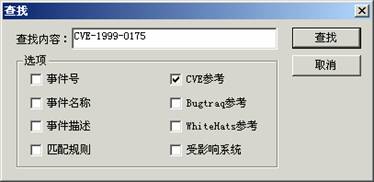 - In the search dialog box, select the CVE reference checkbox, which means the user want to search an event based on a CVE number.