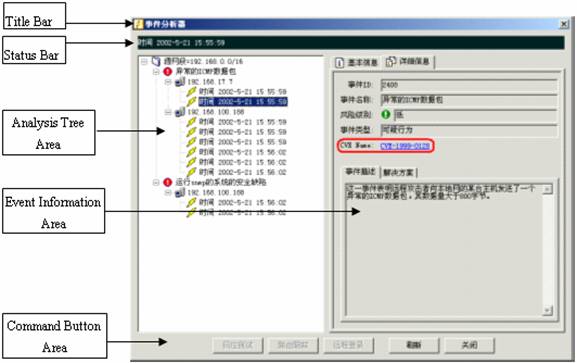 - Click the Detailed Information tab page in the Event Analyzer window. The CVE NAME item will be displayed as illustrated: