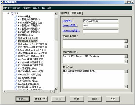 ---------------------------------- KNIDS_EVENT_ID CVE_ID ---------------------------------- KIDS:1040 CVE-1999-0009 KIDS:1044 CVE-1999-0833 KIDS:1049 CAN-1999-0736** KIDS:1050 CVE-1999-0513 KIDS:1057 CVE-1999-1011 KIDS:1058 CVE-1999-0407 KIDS:1059 CAN-2000-0726** KIDS:1060 CVE-1999-0233 KIDS:1061 CVE-1999-0278 KIDS:1064 CAN-2000-0302** ----------------------------------Please refer to the event.chm for the others.