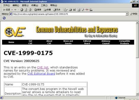 - Click the hyperlink alongside the CVE Name item, the CVE page with the respective CVE name will be opened, which includes the description and reference material of the event.