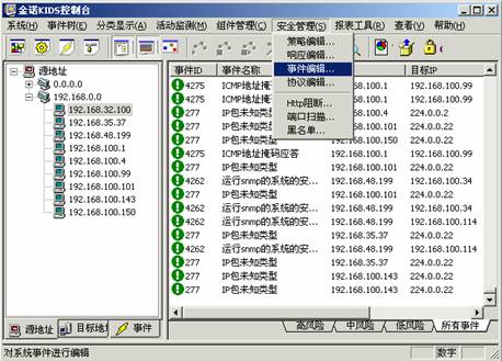 - Select Security Management->Event Editor from KIDS Console. The Event Editor window will be displayed as illustrated.