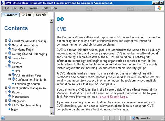 You can enter a CVE identifier in the Keyword field of any eTrust