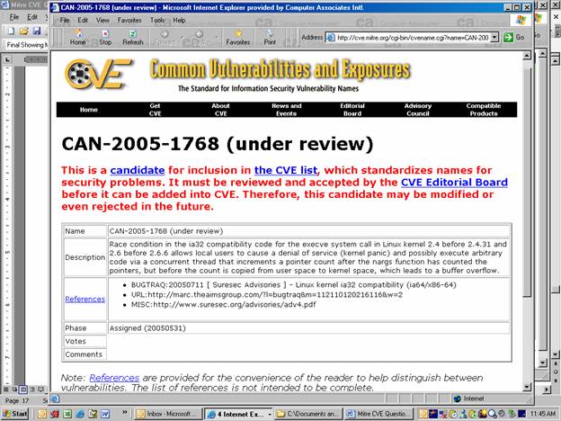 vulnerabilities include hyperlinks to the candidate in the MITRE database