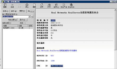 http://www.nsfocus.com/homepage/products/cve.htm (chinese) Detailed alert information can be searched from online Help text via alert name or other key words. If the alert is related to specific CVE information, then the CVE name and link to MITRE website will appear in it.The figures below shows the CVE name link.