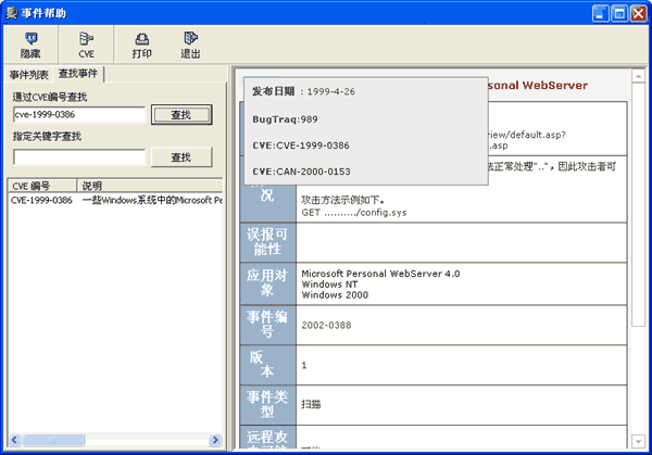 - Input CVE name in the Searching Contents edit box under the find event tab;