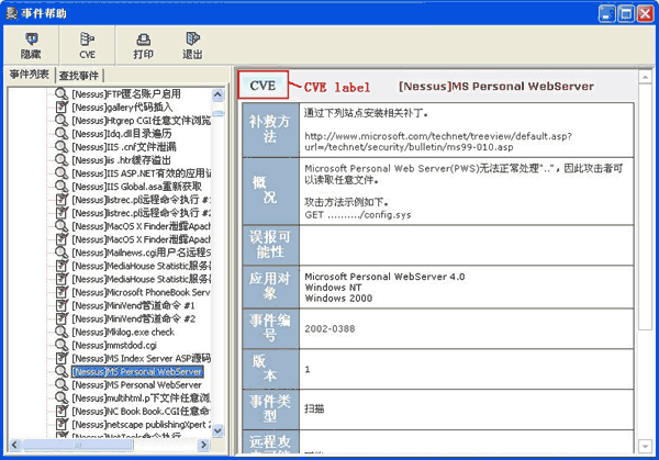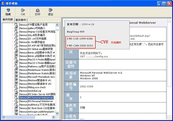 The Event Helper supports full-text searches and CVE name searches for vulnerability information. Each vulnerability with a corresponding CVE has an associated "help" page which contains relevant information for that vulnerability. Please refer to the answers for question 8 and question 9.
