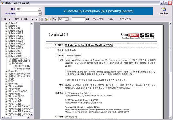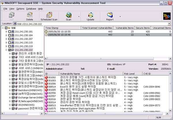 NileSOFT guarantees our customers at least one update of the vulnerability database a month and additional updates when necessary. This guarantee is stated in the Licensing Agreement given upon the purchase of the product. The latest CVE version is always updated when updating the vulnerability database. Secuguard SSE and its vulnerability database support English, Korean, Japanese, and Chinese. Due to the time necessary for translating the vulnerability items from Korean to other languages, the vulnerability database updates for languages other than Korean are one step later than the Korean database.