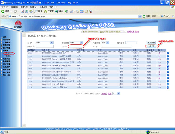 Finding Elements using CVE Names in Quidway SecEngine IDS Web management