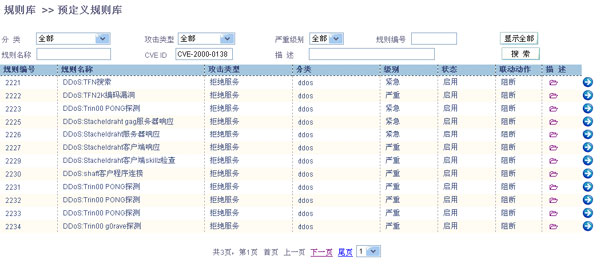 Select the rule base->pre-defined menu from Quidway SecEngine IDS Web