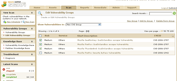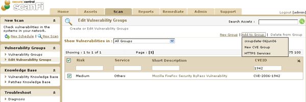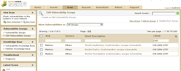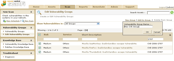 This can be accomplished by creating a vulnerability group in ScanFi as