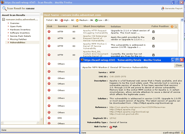 ScanFi server at the customer locations pulls the most recent vulnerability and exposure definitions from the ScanFi Central Repository Server (CRS) located at the AdventNet site. Typically the ScanFi CRS is updated every week with a set of vulnerability definitions and those include the recent CVE names as well. For more details see