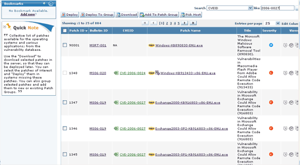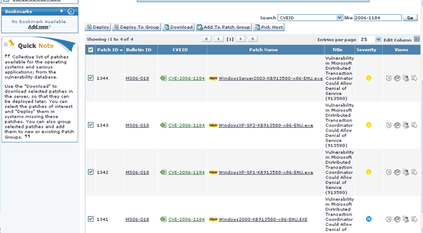 This is explained in the screen shots below. The default patch information view in the PatchQuest GUI lists all the tasks and the associated CVE names wherever applicable.