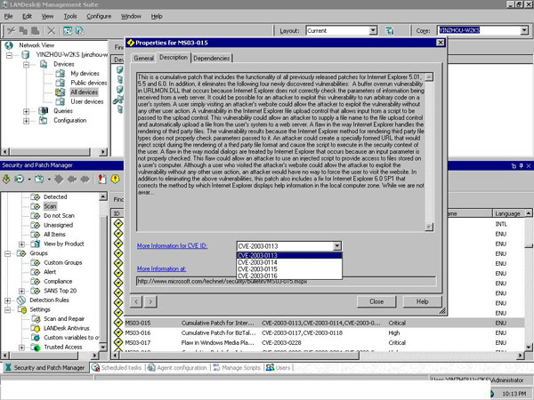 LANDesk security products, including the flagship LANDesk Management Suite as well as LANDesk Security Suite and LANDesk Patch Manager, offer tools for vulnerability definition updating, viewing, and reporting that fully support the CVE standard.