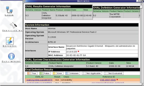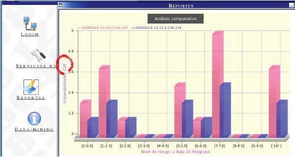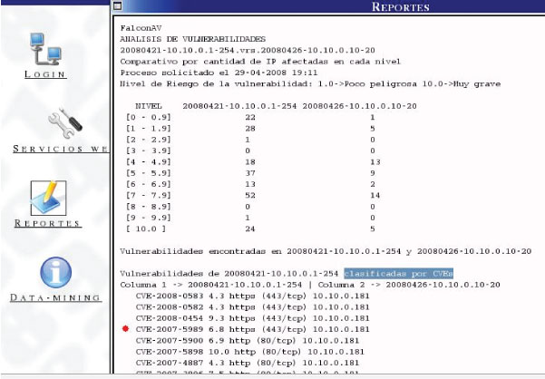 Upon executing a scan, the scan results are displayed in the FAV reports environment. The user should click on "Reports". Analysis Reports and graphics are all based directly on CVE entries. Data-mining reports also have CVE entries as references as well.